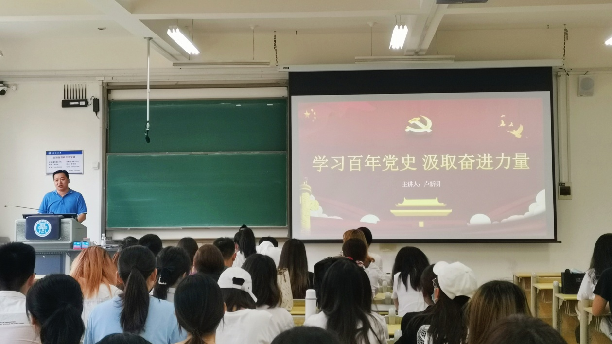 党课讲授过程中,卢新明阐释了青年大学生开展党史学习教育的重要意义,从“读懂历史,才能读懂初心;掀起学院深入开展党史学习教育的热潮;让青春在不懈奋斗中绽放绚烂之花”三个方面,带领学生党员们共同回顾党的百年奋斗历程。卢新明在党课中指出,青年大学生是开展党史学习教育的重要参与力量,学生党支部全体党员要聚焦学史明理、学史增信、学史崇德、学史力行的“十六字”目标要求,用党史学习教育的成果和实效筑牢信仰之基、补足精神之钙、把稳思想之舵,不断加强和改进学习,提升自我进步的能力。要聚焦学懂弄通做实习近平新时代中国特色社会主义思想,做到学思用贯通、知信行统一,在学用结合中深化,成为习近平新时代中国特色社会主义思想的坚定信仰者、忠实实践者,做到真学、真懂、真信、真用。