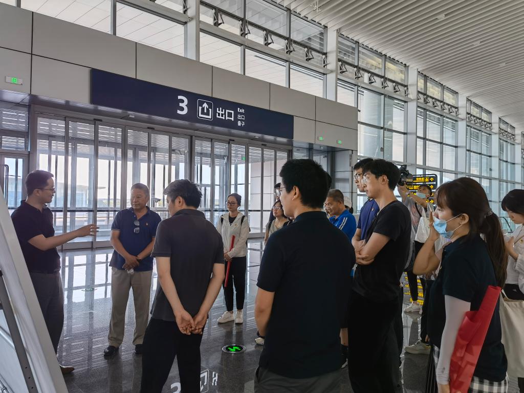 首先,中建西南院山东院党支部书记郭栋带领大家参观了由西南院山东院党支部参与设计的胶东国际机场。他指出,在机场设计过程中,特别是在各种技术困难面前,党员同志充分发挥了先锋模范作用,不断钻研、克服困难,为胶东国际机场的设计贡献出了巨大力量。总建筑师潘磊介绍了机场的总体规划,“山东首座4F级国际机场”、“国内首个全通型、立体化、零换乘的综合交通中心”、“世界首个采用集中式单体五指廊造型航站楼”等称号充分展示了胶东机场国际先进的设计理念。
