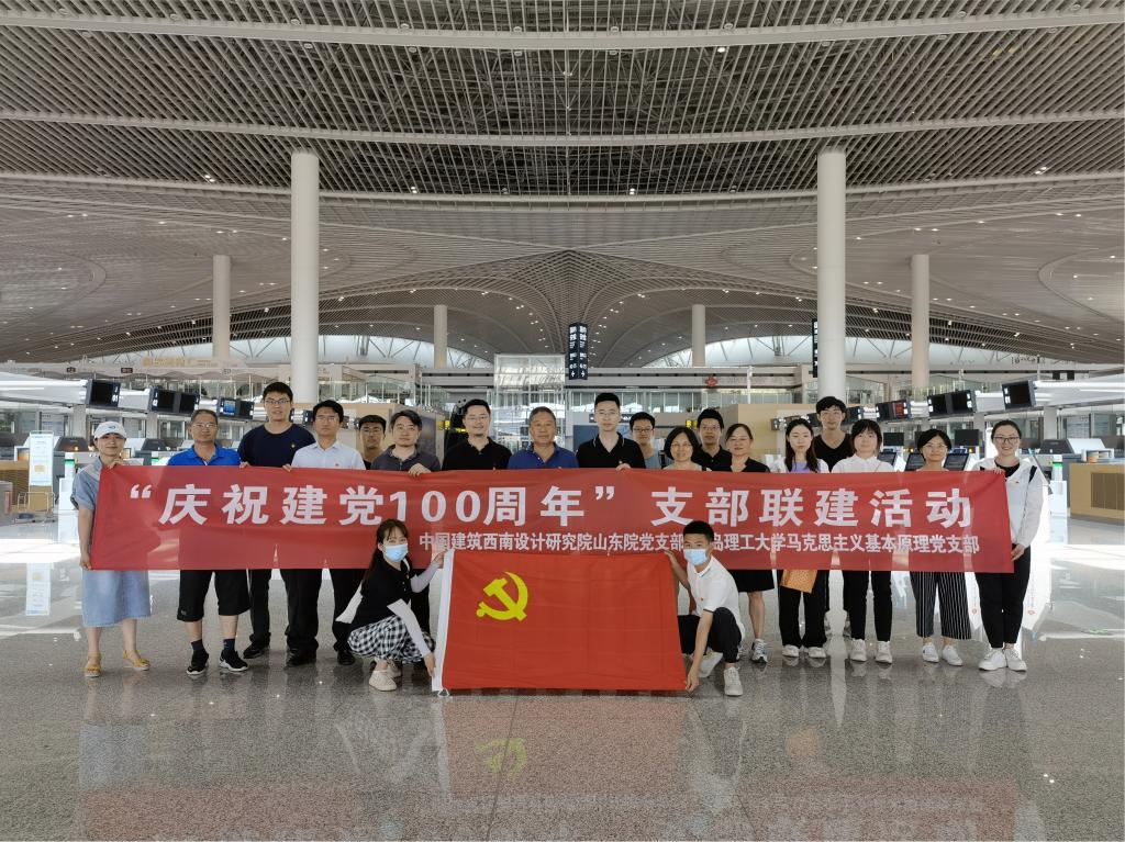 为进一步探索与落实国企党建校企协同的创新模式,6月22日,我校马克思主义基本原理党支部与中国建筑西南设计研究院山东院党支部共赴青岛胶东国际机场,共同开展“庆祝建党100周年”支部联建活动。我校马克思主义学院党总支书记王菁华,马克思主义基本原理党支部书记王妺,中国建筑西南设计研究院有限公司山东院党支部书记、院长郭栋,总建筑师潘磊,顾问唐登权以及马克思主义基本原理党支部、西南院山东院党支部的20余名党员和入党积极分子参加活动。