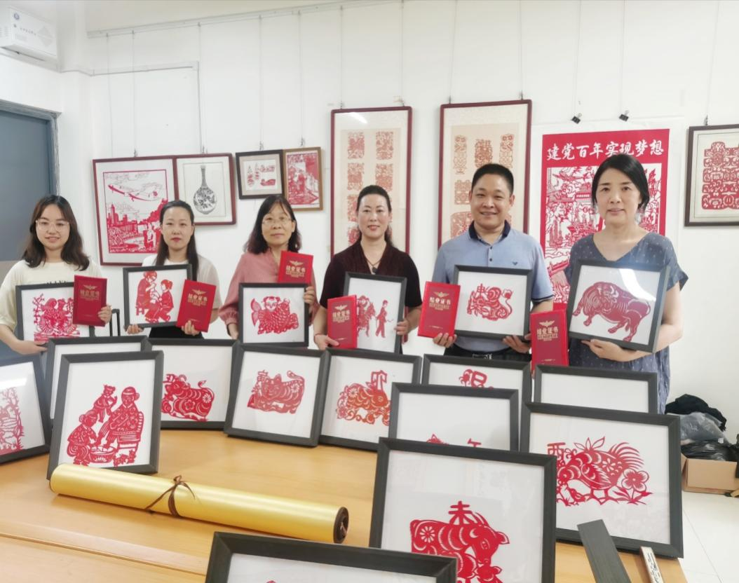剪纸作为传统文化艺术,有着浓厚的乡土生活气息和独特的文化魅力。今年3月以来,为庆祝党的百岁华诞,我校手工艺协会精心策划,邀请胶州剪纸非物质文化遗产传承人薛玉红老师进校教授剪纸课程,共有教师和学生30余人参加课程并进行主题创作。从剪纸的基本技法到剪纸素材、剪纸构图等基础学起,经过短短的10次课程,师生们不仅掌握了剪纸的方法和技巧,还围绕建党百年、生肖文化等主题进行了艺术创作。