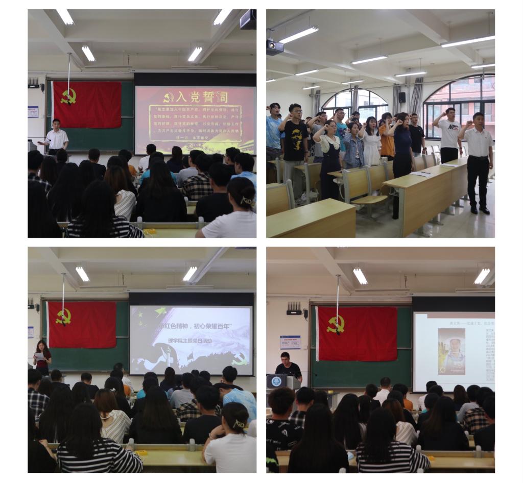 为庆祝建党100周年,激励学生党员不忘初心、牢记使命。7月1日下午,理学院学生党支部在嘉陵江路校区主教学楼A215开展“传承红色精神、初心荣耀百年”主题党日活动。