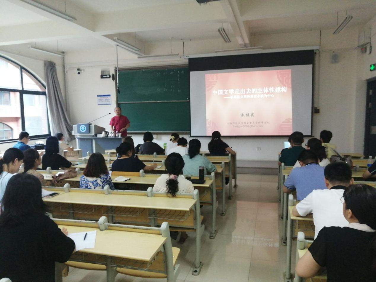 7月13日下午,人文与外国语学院在嘉陵江路校区主教学楼B203教室举行了第104期新论语讲坛科研讲座。本期讲座邀请到了上海师范大学朱振武教授主讲,主题为“中国文化走出去的主体性建构——以葛浩文英译莫言小说为中心”。院长巩湘红主持会议,学院相关专业师生参加讲座。