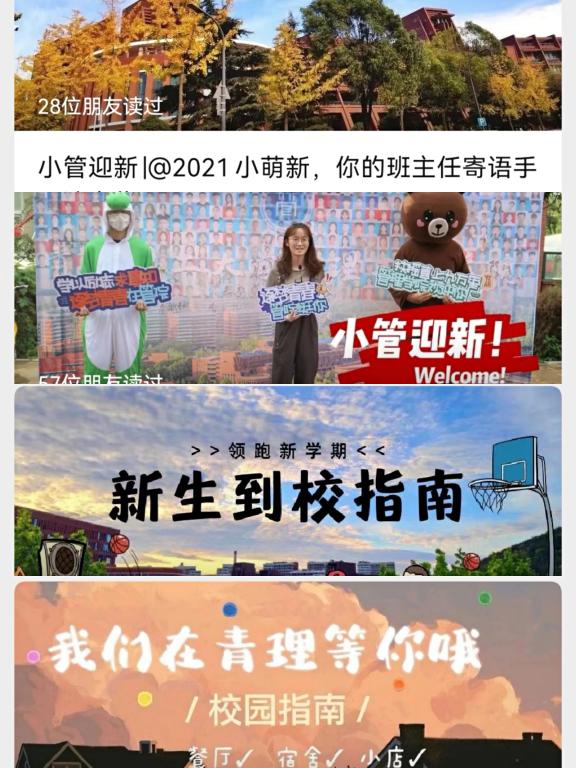 为让新生及家长更好了解学校、学院和大学生活,学院高度重视迎新宣传工作,从线下和线上齐发力助力迎新工作。线下以迎新场地工作展板宣传为主,主要包括学院介绍、专业介绍、班主任风采展、考研风采录等,让前来报到的学子详细的了解学院。线上方面,学院新闻中心团队以“管闻天下”微信公众号为媒介,开辟“小管迎新”特辑,涉及学院介绍、校园环境、班主任寄语、入校指南、生活适应等方面。新生报道时,新闻中心团队坚守岗位,随时记录新生们开学的精彩瞬间,用相机和文字讲好他们的开学故事,通过“管闻天下”微信公众号推送迎新专版,定格留下属于2021级新生最美好的入校记忆。
