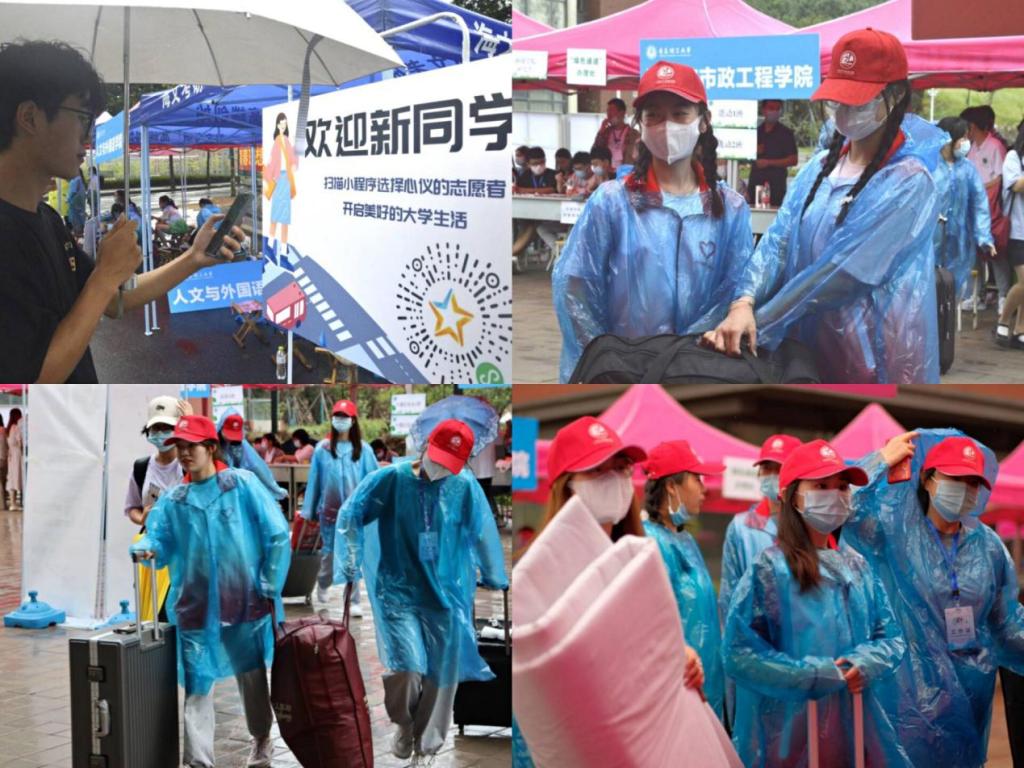 今年迎新,扫码志愿是人文与外国语学院迎接新生的重大创新。新生可通过“扫码志愿”查看志愿者信息,自行选择志愿者,这使新生得以享受更加科学化、智能化、人性化的“智慧”入学体验,真正实现“我的志愿者我来选”。同时,各部门、各学院也可以随时查看新生实时报到数据和迎新动态。志愿者们头戴“小红帽”,身着志愿服务马甲,不惧风雨交加,为刚刚入校的萌新提供热情周到的服务,构成开学期间校园里最靓丽的风景线。在被新生选择后,他们提过同学们手中的行李,为学生答疑解惑;他们撑起一把把雨伞,引导返校学生有序进入……他们用温暖的笑容温暖着新生们的心,用贴心的服务诠释着家的温度;他们奋勇担当,彰显人外之魂,完美演绎理工精神。英语213班新生杜飞顺利完成报到后表示:“离开父母,一个人进入学校有点忐忑,但是学长学姐一直陪着我,帮我运行李,给我介绍校园,带我完成入校流程,感觉心里暖暖的。”学院领导班子深刻肯定志愿者“助人自助、无私奉献、不求回报”的精神,寄语新生:“今年你们是被服务的学生,希望明年你们能够努力成长为做志愿服务的学长学姐,将这种奉献精神源源不断地传递下去!”