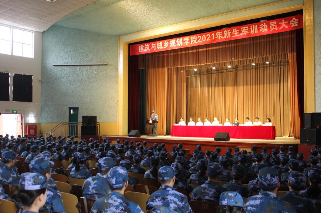 9月6日,建筑与城乡规划学院2021级新生军训动员大会在市北校区礼堂隆重举行。建筑与城乡规划学院党委书记肖学斌,党委副书记、副院长纪玉超及全体副院长、办公室主任、全体辅导员、全体2021级新生参加会议。会议由学生工作办公室副主任、团委副书记杨霈宣主持。