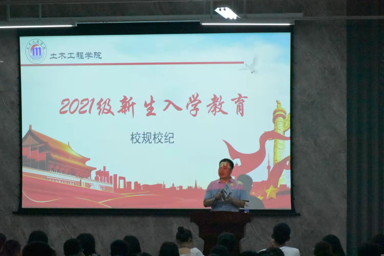 为使新生进一步了解校规校纪,帮助新生更好地了解大学生活、做好发展规划,9月17日下午,土木工程学院在嘉陵江路校区C2-2-211、222报告厅举办了新生入学教育讲座。学院党委副书记、副院长邵先锋,学生工作办公室主任、团委书记王俊富,辅导员孙宇分别为2021级全体学生开展校规校纪、校情校史、科技创新、第二课堂成绩单等方面教育。