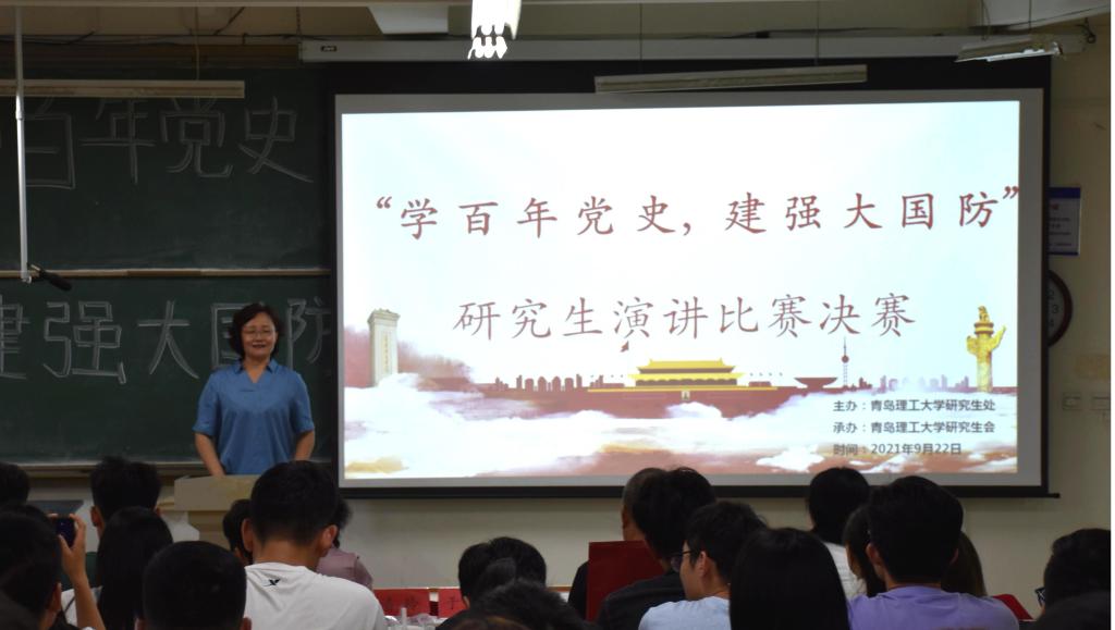 为进一步加强青年学生国防教育,激发大家关心、热爱、建设和保卫国防的热情,9月22日下午,研究生处在嘉陵江路校区主教学楼B334举办“学百年党史 建强大国防”主题演讲比赛决赛。比赛邀请山东省演讲学会副会长、青岛市演讲协会副主席于宝真,青岛理工大学马克思主义学院党总支书记、教授王菁华,山东省演讲学会常务理事、青岛市高校演讲委员会主任潘玲,青岛理工大学团委副书记李晓霞,青岛市高校演讲委员会副主任、青岛理工大学新闻中心主任王妍担任评委。研究生处副处长贾玉跃、教育管理科科长冯宁和各学院研究生到场观摩。