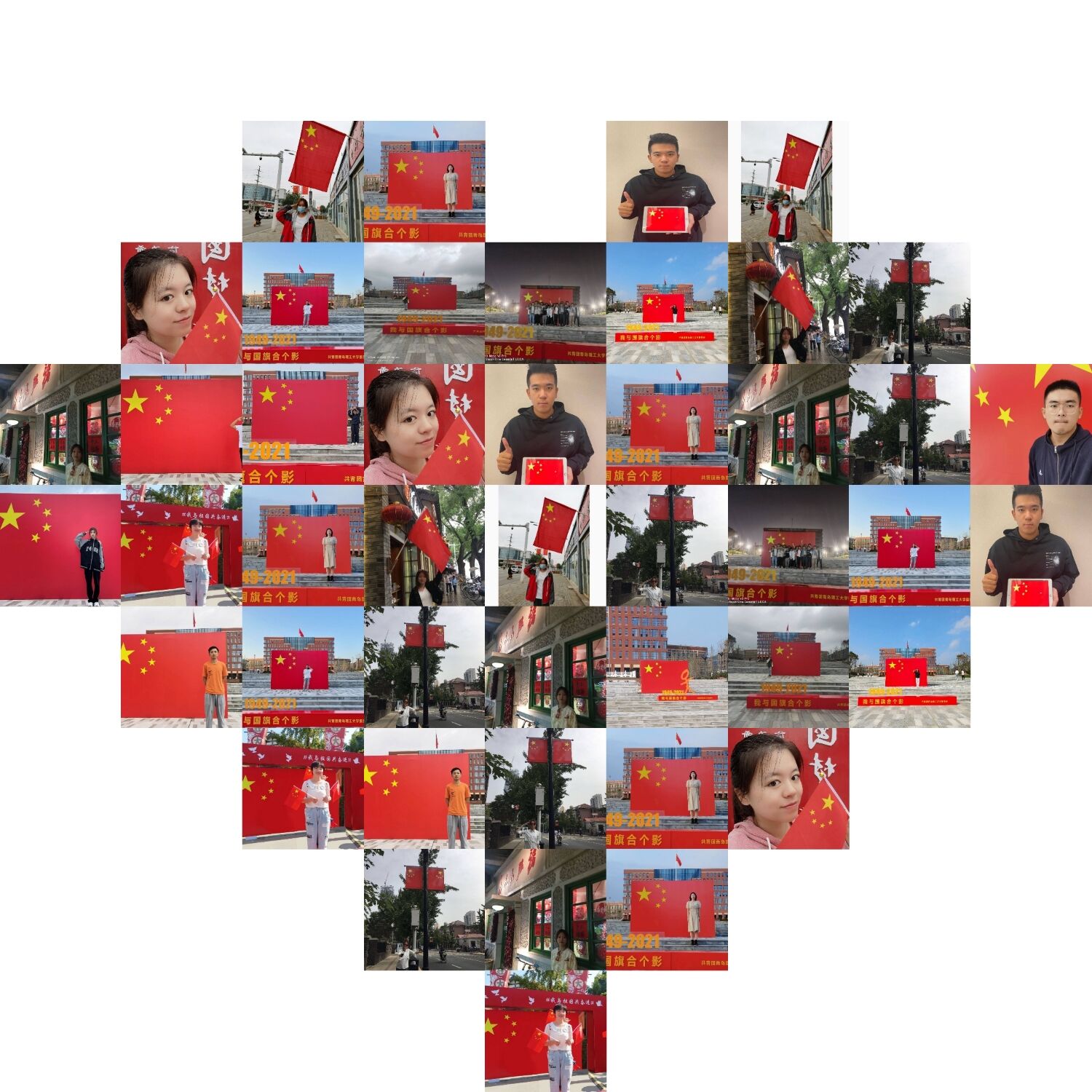 活动中,无论是留校的同学,还是返家的同学,都用最纯洁的笑、最真实的情,争相与五星红旗同框,表达着对祖国最深挚的爱。队员们选取不同地点,设计创意姿势和独特拍摄角度,明艳的笑脸和鲜艳国旗定格在镜头里。