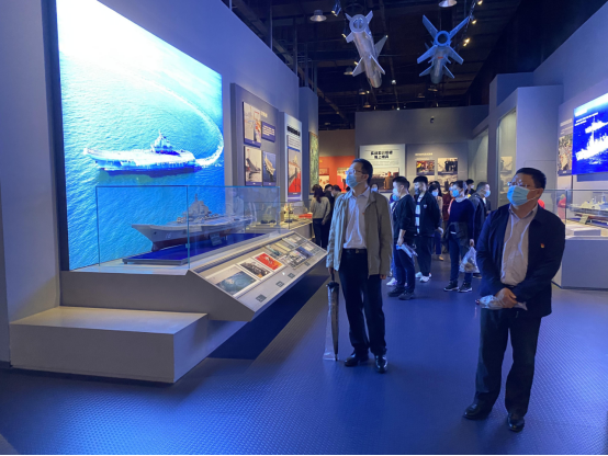 中国人民解放军海军博物馆,以人民海军发展为主轴,全景式展现了人民海军取得举世瞩目的伟大成就。全体教职工和师生党员在濛濛细雨中参观了室外海军陆战装备展区和海军航空装备展区,随后又在讲解员的引导下,相继参观了“艰苦创业、扬帆起航”“改革开放、乘风破浪”“强国强军、挺进深蓝”三部分室内展厅。一幅幅生动的历史画卷、一个个激动人心的战斗故事、一个个鲜活的历史人物,见证了人民海军在中国共产党的坚强领导下,从无到有、从小到大、从弱到强的创业史、奋斗史、发展史,让每一位党员同志在思想和精神上接受了一次深刻的洗礼。