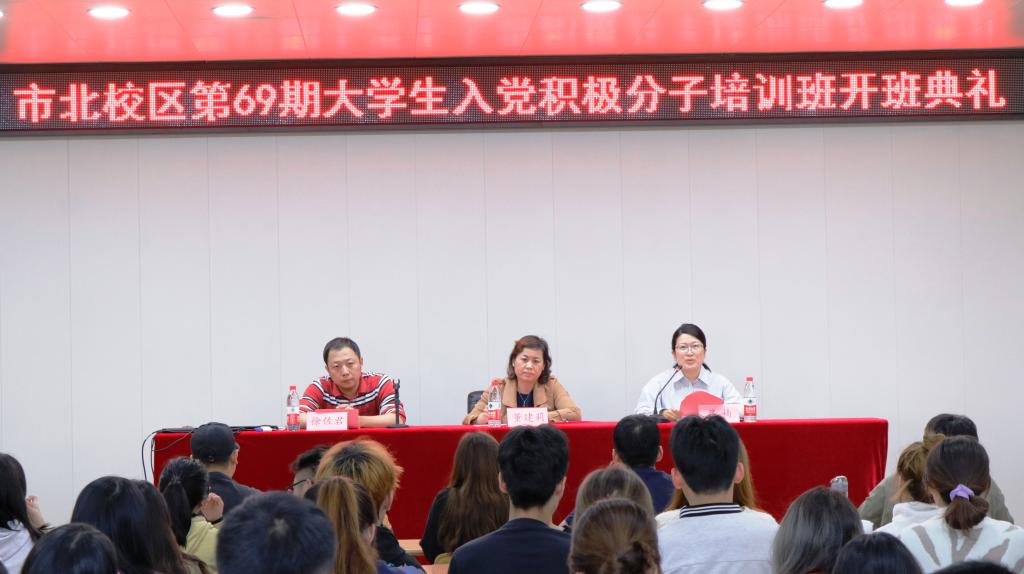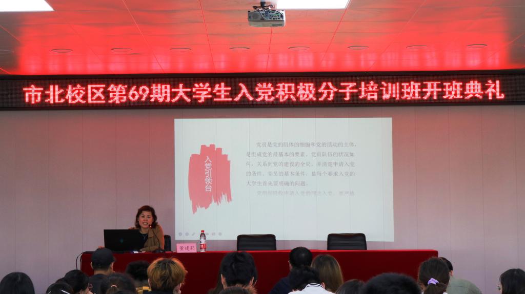 10月13日下午,市北校区第69期大学生入党积极分子培训班在二号教学楼416开班。校档案馆馆长董建莉,艺术与设计学院党委书记吕楠,艺术与设计学院党委副书记、副院长徐佐君及第69期大学生入党积极分子培训班132名学员参加了开班典礼。