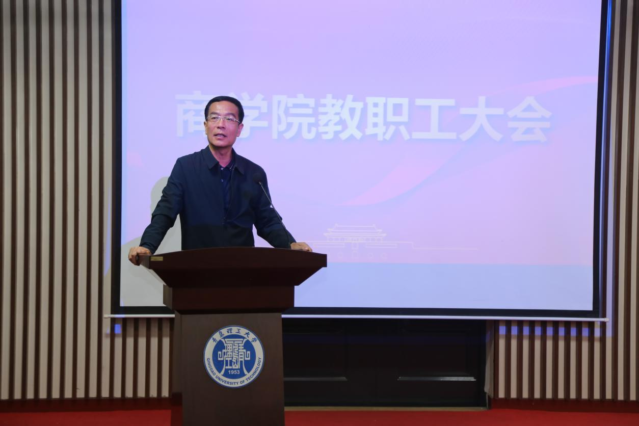 10月13日下午,商学院在嘉陵江路校区主教学楼西报告厅召开2021年度教职工大会。校党委常委、副校长齐德义,商学院领导班子、商学院全体教职工参加会议,会议由学院党委书记王粲主持。