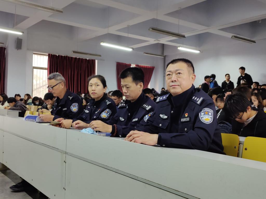 谢卫东以近几年各高校发生的网络诈骗的真实案例为切入点,采取现场讲解与互动交流相结合的方式,对在学生群体中发案率较高的“二手交易、网络刷单、借贷”等网络诈骗形式进行深入剖析,详细介绍诈骗分子的惯用手段、作案方式以及防范的技巧,提醒同学们要提高警惕,增强防诈骗意识,切实维护自身利益。随后,民警介绍了“国家反诈中心”APP的意义以及作用,强调安装“国家反诈中心”APP的重要性,现场指导各位同学安装“国家反诈中心”APP并开启相关功能以保证自身安全。