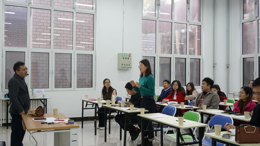 活动伊始,刘启辉首先通过调查问卷的形式了解了辅导员在工作和生活中所面对的压力及处理方式。随后,刘启辉带领大家进行了“抓与逃”和“互助放轻松”两个热身小游戏开启了破冰之旅,拉近彼此之间的距离,为活动营造了宽松愉快的氛围。小组活动“你从哪里来?我的朋友”“信任之旅”等体验互动式教学法,将理论讲授融入互动式体验实践之中,在团体辅导的实际应用案例中让大家感受到高校团体辅导操作性强、覆盖面广、效果明显等特点,感受信任与被信任、爱与被爱的幸福与快乐。他鼓励辅导员老师们可以应用这种方法对学业困难群体、经济困难群体、焦虑群体开展有针对性的团体辅导。
