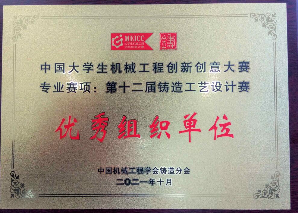 近日,第十二届中国大学生铸造工艺设计大赛颁奖典礼在辽宁沈阳举行。我校机械与汽车工程学院派出5个学生参赛团队参加比赛,3个学生参赛团队取得了中国大学生铸造工艺设计大赛全国三等奖的佳绩,项目指导教师为王进、王海涛、张琦老师。我校被大赛组委会授予优秀组织单位。