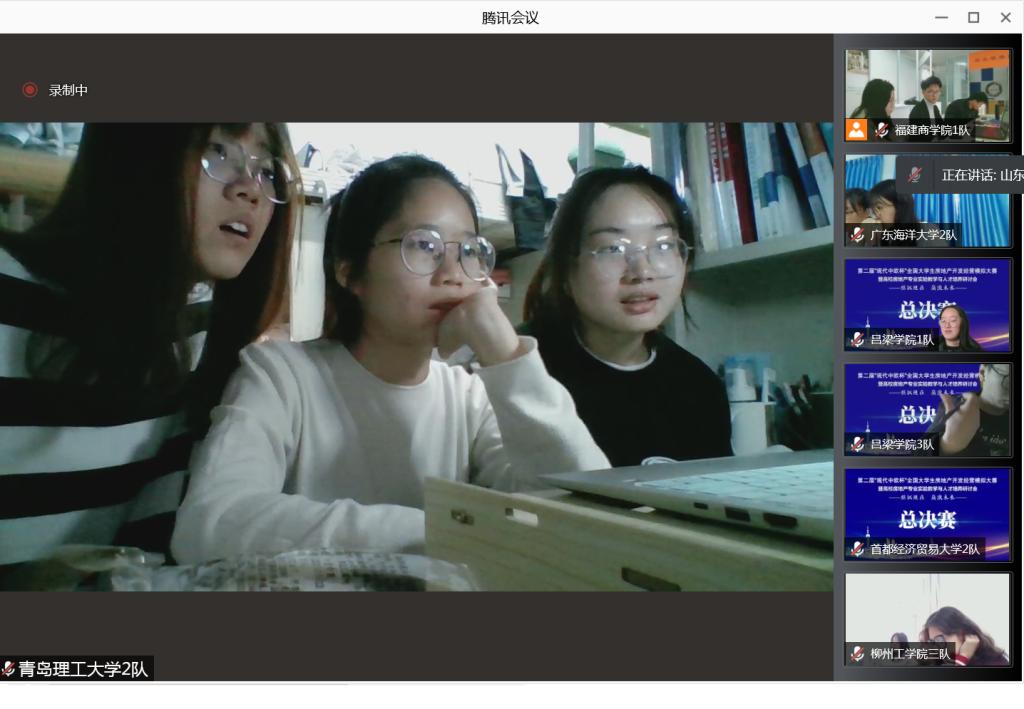 11月27日,由中国建设教育协会房地产专业委员会主办,首都经济贸易大学、北京城市学院、北京现代中欧软件开发有限公司承办,青岛理工大学、华中师范大学等协办的第二届“现代中欧杯”全国大学生房地产开发经营模拟大赛总决赛圆满结束。由我院郭平、李萌萌老师指导的青岛理工大学1队(房产201钱程、造价202崔嘉仪、房产202丰冰)、青岛理工大学2队(房产202刘娟娟、房产201朱昱新、房产201陈鲁慧)获全国总决赛本科组二等奖。