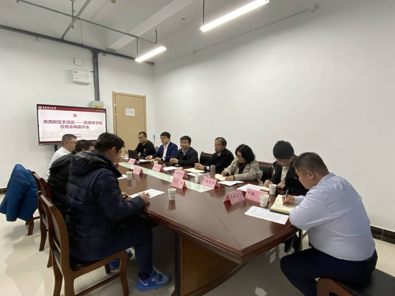 12月1日下午,“青西新区农高区-青理商院 校地会商”在商学院504举行,青岛农业高新开发区管委会综合部王强、科技促进部部长孙蜀东、中山大学农学院刘健副研究员等一行到会,商学院副院长云乐鑫、胡保玲,院长助理金炜博,乡村振兴研究团队成员及学生工作办公室相关人员参加会议。胡保玲主持本次会议。