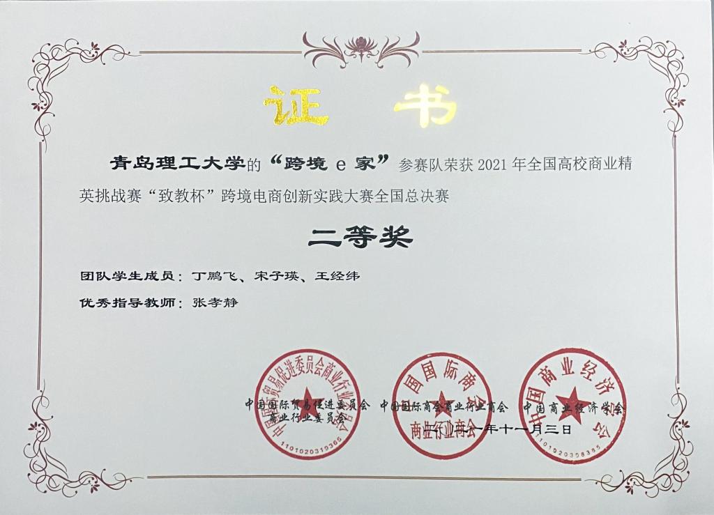 近日,由中国国际贸易促进委员会商业行业委员会、中国国际商会商业行业商会和中国商业经济学会共同举办的2021年全国高校商业精英挑战赛“致教杯”跨境电商创新实践大赛全国总决赛成绩揭晓,校区选派的1支队伍获总决赛二等奖的好成绩。