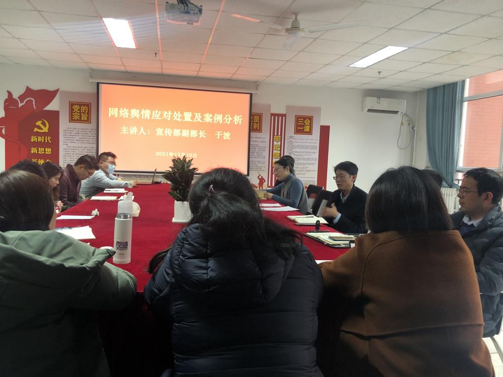 为切实增强基层党务工作人员网络舆情意识,提高舆情应急处置能力,12月10日下午,信息与控制工程学院党委在信控大楼206会议室举行“网络舆情应对处置及案例分析”专题学习辅导,邀请学校宣传部副部长于波担任主讲,党委书记高洁主持,党委委员、各支部书记、支部委员、工会委员参会。