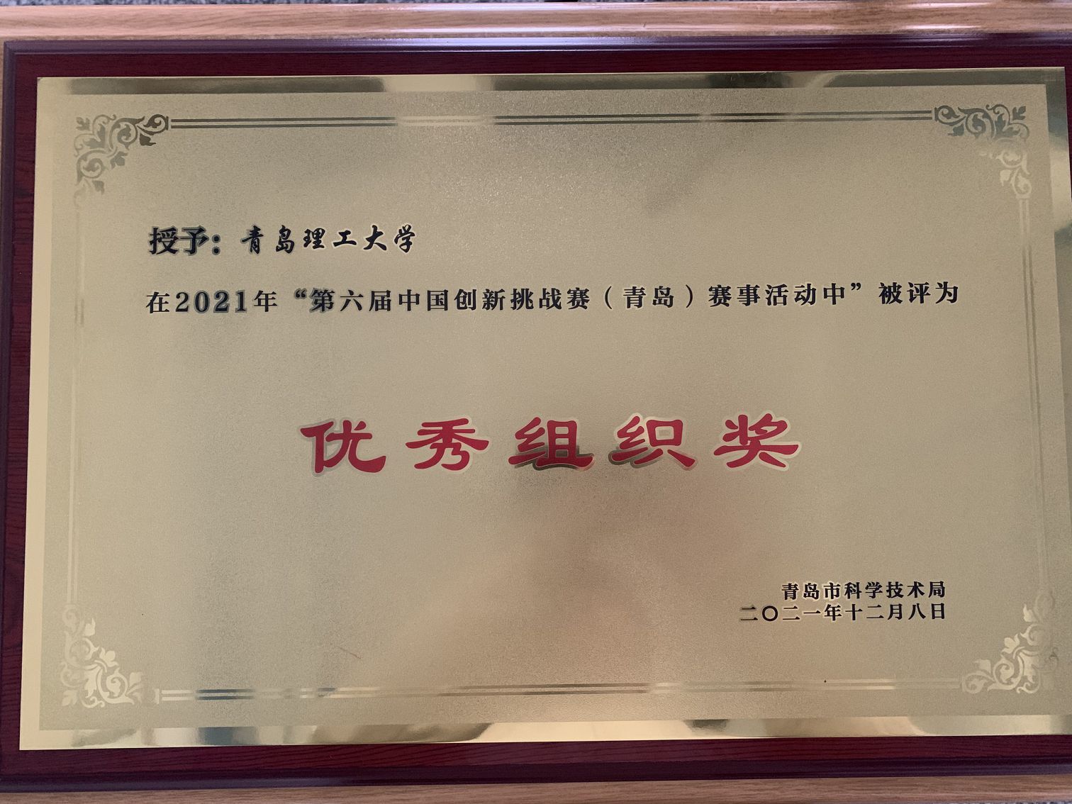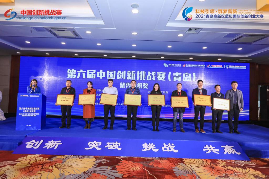 12月8日,第六届中国创新挑战赛(青岛)总决赛暨2021蓝贝国际创新创业大赛颁奖典礼在青岛高新区启动。本届中国创新挑战赛(青岛)由青岛市科技局、青岛高新区管委共同主办。我校积极组织科研教师参加技术需求对接活动,并实地调研意向项目,在赛事组织过程中表现优异、贡献突出,被青岛市科技局授予“优秀组织奖”。