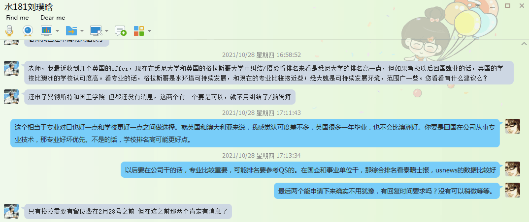 针对想出国深造的学生,辅导员李卓结合自身出国留学经验,为学生在出国考试、材料准备、学校选择、入学申请提供全方位指导,已有学生获得名校录取资格。