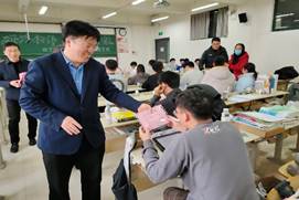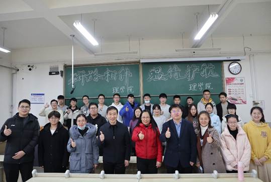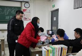 12月22日下午,理学院党委书记邹传波,副书记、院长马鸿洋,副书记、副院长刘聘以及全体辅导员老师到考研自习室看望备考学生,将寓意金榜题名的文具袋送到每位考研学子手中,助力考生下笔有神、妙笔生花,院长和书记一边发放礼物,一边叮嘱同学们在考研冲刺的最后阶段要注意放松心情、保重身体、坚持不懈、坚定信心,并祝每一位学子都能取得理想成绩。同学们纷纷表示,自己一定会抓住机会,以优异的成绩回报学院的培养和关怀!