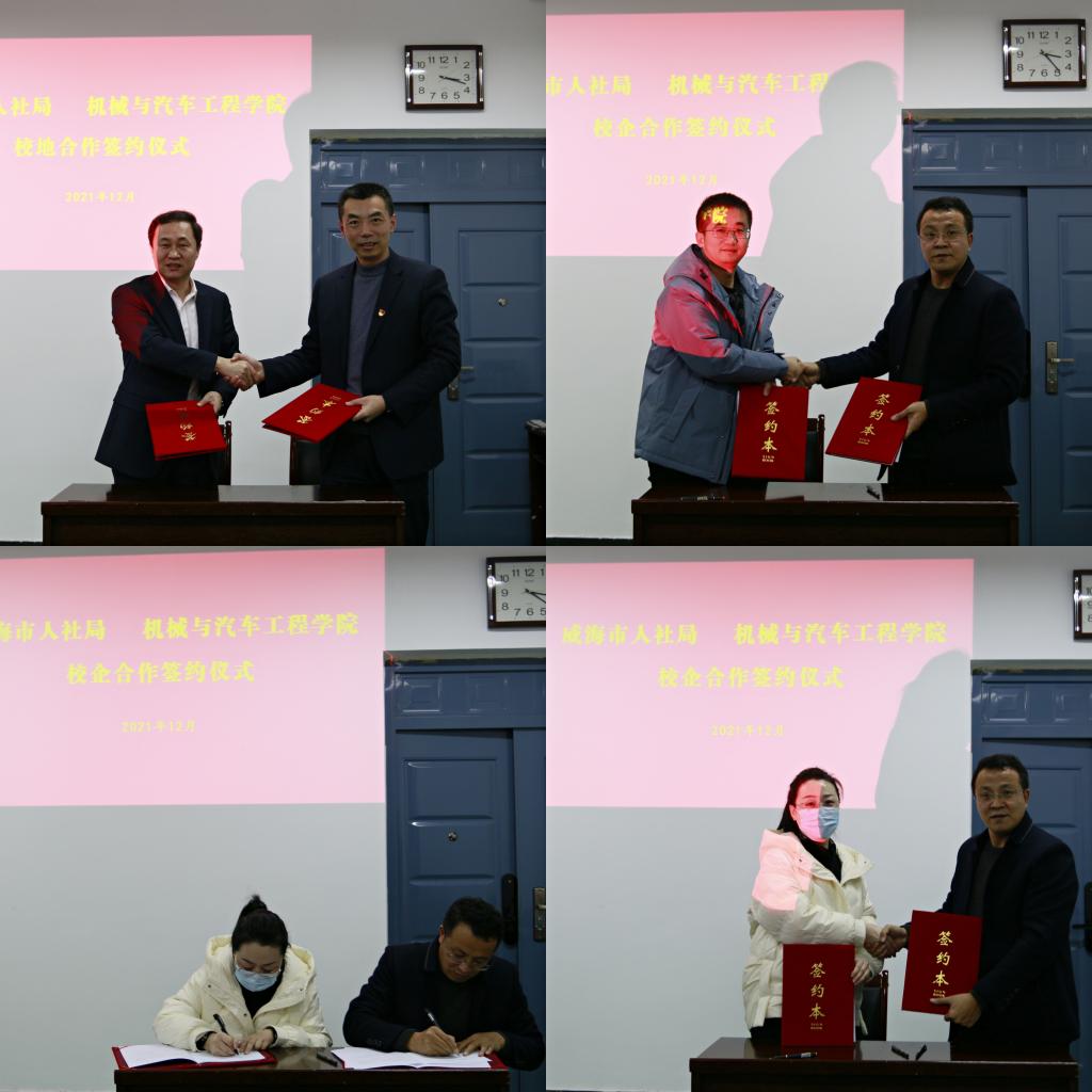 座谈会上,李忠晓对威海市人社局招才引智一行表示热烈欢迎,并介绍了学院发展历程、人才队伍建设、专业设置状况和取得成绩。牟永川介绍了我校的发展现状和就业创业工作。郭良田重点推介了威海市市情和就业环境,刘峰介绍了威海市人才优惠政策。洽淡后,威海市人社局与机械与汽车工程学院表达了明确的合作意向,签订了推进胶东经济圈公共就业与人才服务工作框架协议。学院与4家企业签订了人才合作协议和就业创业基地合作协议。