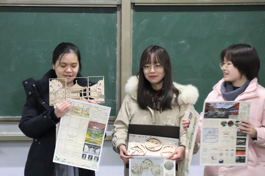 近日,建筑与城乡规划学院在市北校区一号教学楼200阶教室举办中国建筑文创设计作品展,2019级建筑学专业学生参与本次作品展,赵琳教授对作品进行了点评。