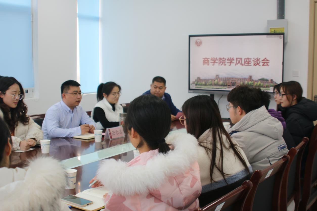 “我们宿舍有统计专业的学风观察员,还有学习成绩专业前十的海豚领航者,有学业上的困难可以通过学风观察员汇总上报学院集中解决,有不懂的问题可以随时请教海豚领航者,‘在身边'的学业帮扶让我收获特别大。”统计202班明玉珍同学对学院今年的学风建设举措十分认同,高兴地和同学分享着自己的喜悦。而学院领导班子也走进学生,打通学风建设“最后一公里”。商学院执行院长、青年泰山学者云乐鑫从自身的求学经历和科创经历谈起,和学生分享专业学习和科技创新“秘诀”,告诉学生学院的内涵发展离不开学生的青年贡献,勉励学生取得更好的学习成绩和科技创新成果。
