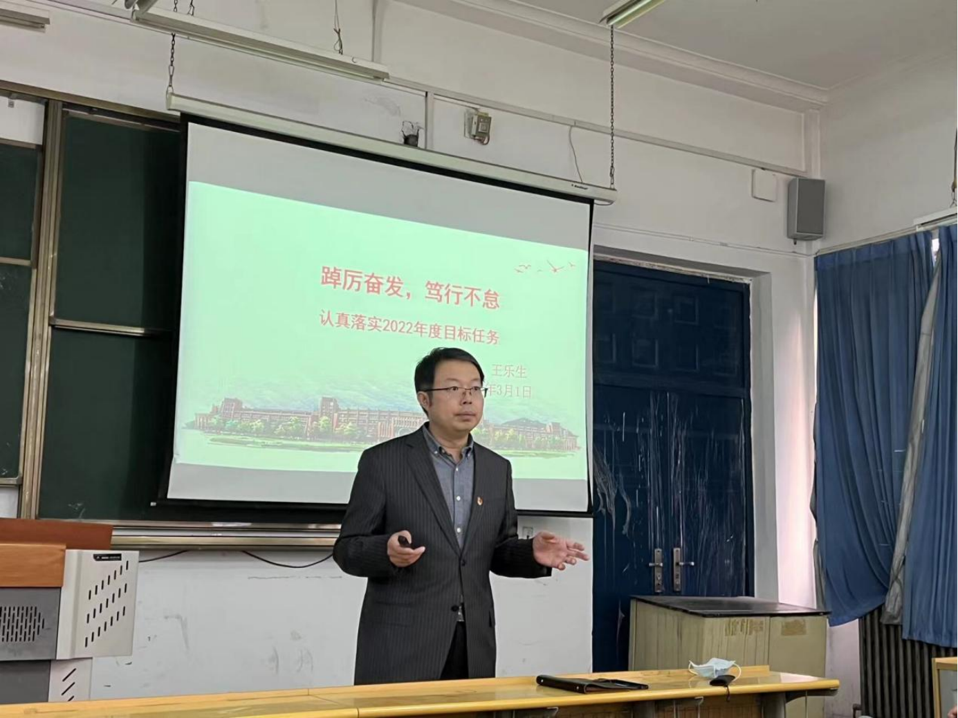 王乐生要求学院全体教职工做好工作周历工作计划和总结,始终保持对工作的热情,踔厉奋发,笃行不怠,高质量完成目标任务,以优异的成绩迎接党的二十大的胜利召开。