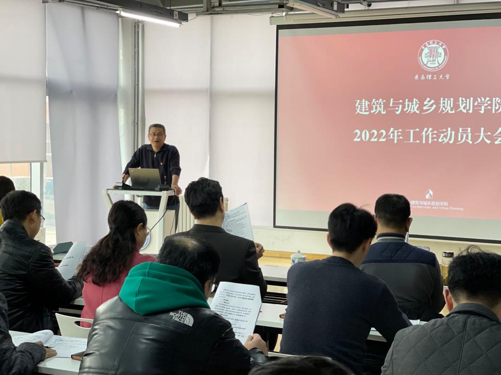 一年之计在于春,全年工作看开局。2月28日是新学期开学第一天,建筑与城乡规划学院召开党政联席会扩大会议暨2022年工作动员大会,总结2021年工作,部署2022年度工作。学院处级领导班子成员、党委委员,各系班子成员、教研室主任参加会议,会议由学院党委书记肖学斌主持。