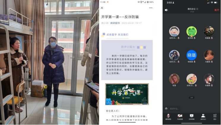 以行践言显担当,上好疫情防控第一课。辅导员、班主任通过主题班会、学生骨干会议等种方式组织开展疫情防控专项教育,做好疫情防控知识培训,引导学生了解最新防控要求,掌握科学防护措施,增强科学防疫意识。同时,辅导员将鲜活的“抗疫素材”变为丰富的“思政教材”,讲好开学第一课,挖掘疫情防控中的真实案例和育人元素,为全体学生带来一节生动丰富的疫情防控思政课。