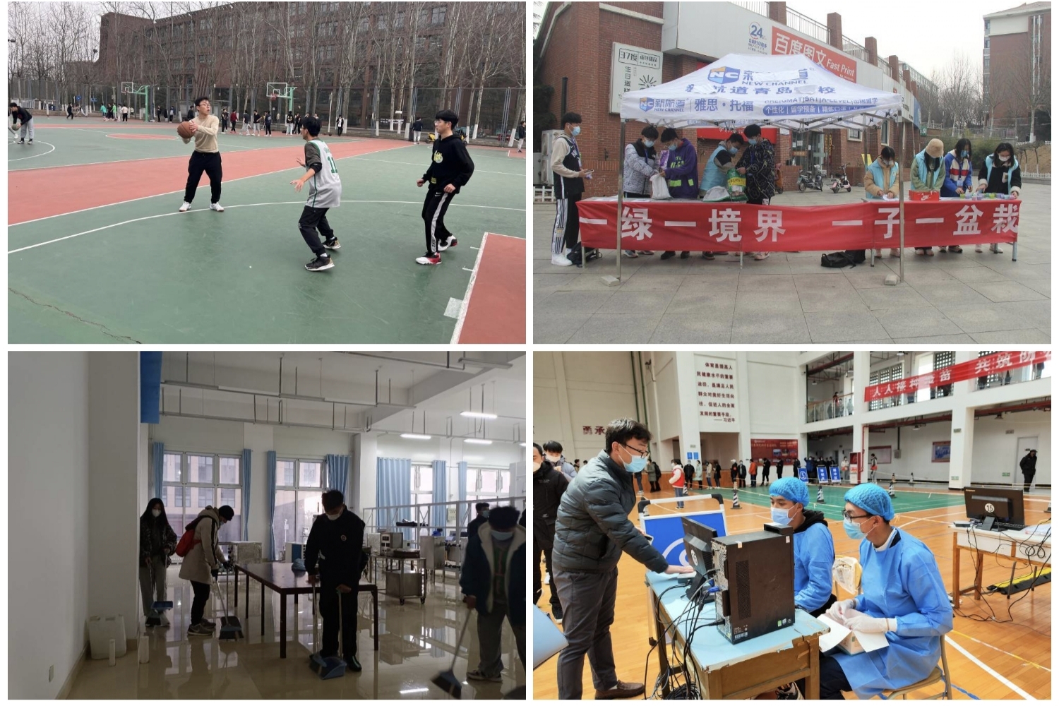 运动加劳动,一起动起来。在做好疫情防护的前提下,学院依托“阳光体育”,鼓励同学们每天运动1小时,足球赛、篮球赛、乒乓球赛、羽毛球赛不停歇,跑步线上Keep打卡,贾婉琦开设舞蹈班,教跳爵士舞,深受同学们喜爱。