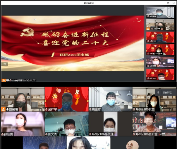 多样党课团课,绽放“青春思想之花”。为积极响应学校号召,研究生第二党支部委员林苏丹及2106班团支书范晨曦结合当前学校疫情防控工作以“抗疫Young先行、青春献礼二十大”为主题,组织学院党员、团员开展“砥砺奋进新征程,喜迎党的二十大”主题团课。教育党员、团员青年坚定不移听党话、跟党走,设计发布“Young先行”抗疫倡议书,发动广大硕博生积极发挥专长投身抗疫工作,以实际行动庆祝建团100周年,以奋发向上的精神状态迎接党的二十大胜利召开。