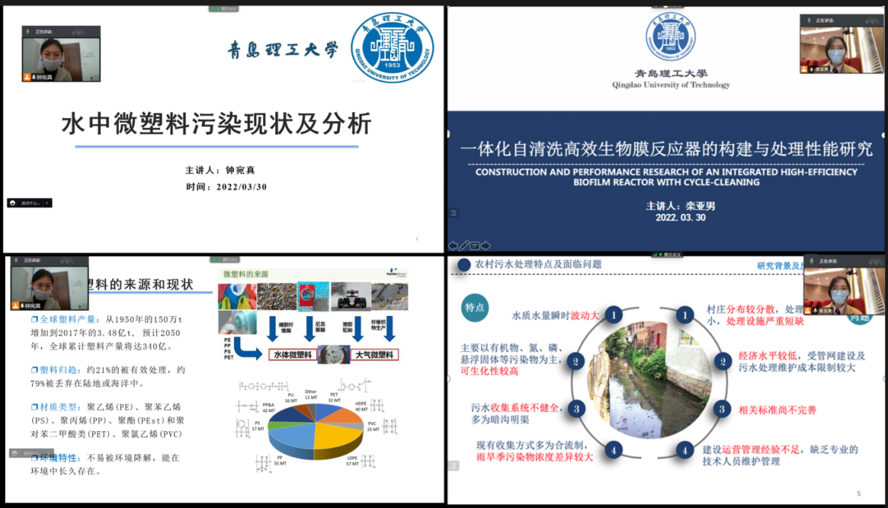多样学术帮扶,绽放“青春科研之花”。担心疫情期间硕士学弟学妹们网课学习效果不足,学院21级博士生钟宛真、栾亚男主动担起责任,结合自己所学专业及研究课题,开展“环境Young学堂”学术帮扶课。博士钟宛真结合自己寒假期间,作为硕博社会实践团成员开展现场调研帮扶的经历,分享了调研经验和成果,以及如何将课题研究与实际应用相结合,解决水体中污染物去除的问题。博士栾亚男根据对山东省农村地区污水处理现状的实地考察,对现阶段我国农村污水处理存在的问题及农村污水分散式处理工艺的课题研究进行了分享。两位博士结合个人经历的讲解模式,内容丰富生动、知识点梳理详实,得到硕士研究生们的一致好评。