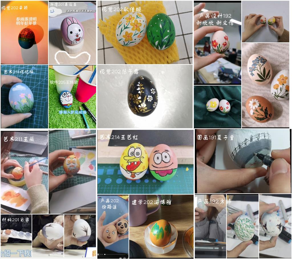 依托清明节日习俗——吃鸡蛋、绘鸡蛋,3月29日至4月4日,一场充满创造力的“折柳作笔,彩绘清明”主题活动在两校区开展,累计1104人报名参与,递交优秀视频作品406份。同学们在蛋壳上绘画,各式各样的彩绘设计作品不仅承续着中华传统民俗脉络,还创意风格面貌一“新”,表达着个人特色与时代新风。“从未想过在大学校园中也能有机会再次参与小时候喜欢玩的节日小游戏,更没想到会有这么多人和我一样喜欢清明节在鸡蛋上画画,拿起鸡蛋在上面画起图案的那一刻仿佛又回到了无忧无虑的时光。”经济201班田法勇说道。