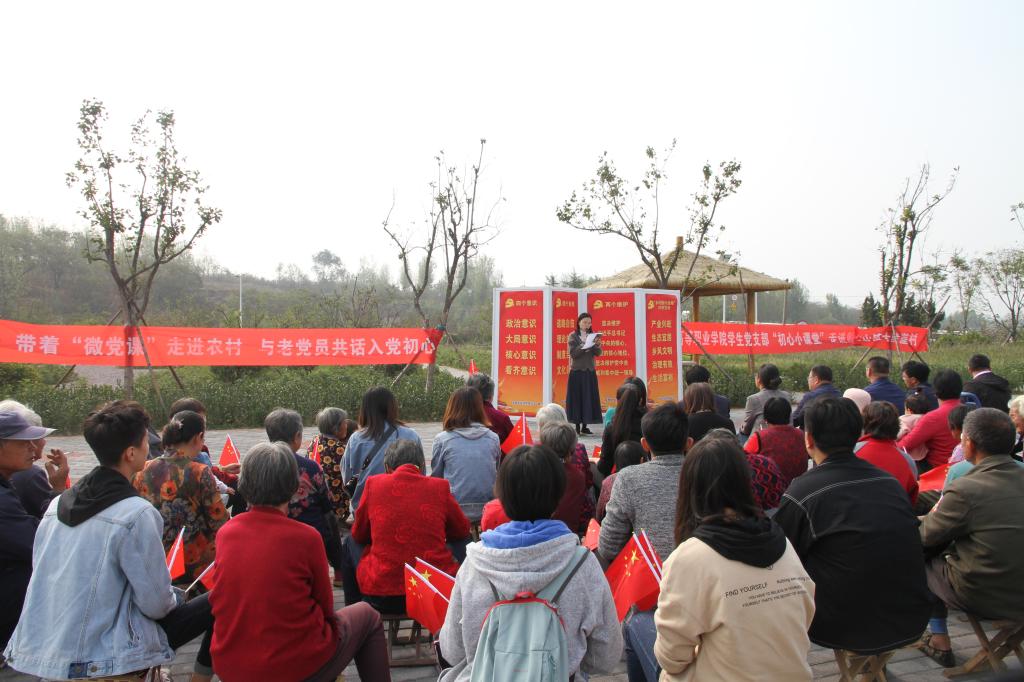 为深入开展“不忘初心、牢记使命”主题教育,积极用习近平新时代中国特色社会主义思想武装头脑、指导实践,高等职业学院学生党支部按照学院“不忘初心、牢记使命”主题教育的总体安排,积极深入社区、走进农村、面向学校开展“初心小课堂”理论宣讲活动。2019年10月18日上午,学生党支部全体成员来到宣讲的第一站西海岸新区宝山镇大陡崖村,和村里的老党员共话入党初心。