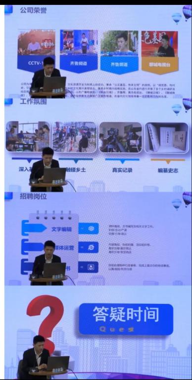 校友变“主播”,“文暖”助就业。学院充分调动校友资源,积极对接用人单位,整合就业资源,拓展高质量就业渠道,力求做到精准筛选,择优定向推荐。毕业生通过“云端访企”先后与灿成文化、字节跳动(济南)、金茂和艾禾高科生物四家企业连线,现场了解企业办公环境、发展方向、发布招聘需求。宣讲会后,学院第一时间召开“辅导员面对面”座谈会,深入了解学生反馈,争取让有意愿的学生入职心仪的公司。