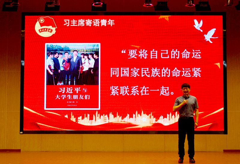 在图书馆报告厅,管理工程系辅导员赵辉结合自己10年的学生工作经历,向参会同学分享了品读心得,他说到:“《习近平与大学生朋友们》通过讲述习近平总书记与青年大学生的一段段生动往事,再现了习近平总书记矢志不渝的初心坚守、永不懈怠的使命担当、情暖民心的赤诚情怀、求真务实的优良作风。大家要以习近平新时代中国特色社会主义思想为指引,在实践过程中多思考、多探索,磨砺意志、提升能力,不断完善自我,牢记初心,全心全意为人民服务。”