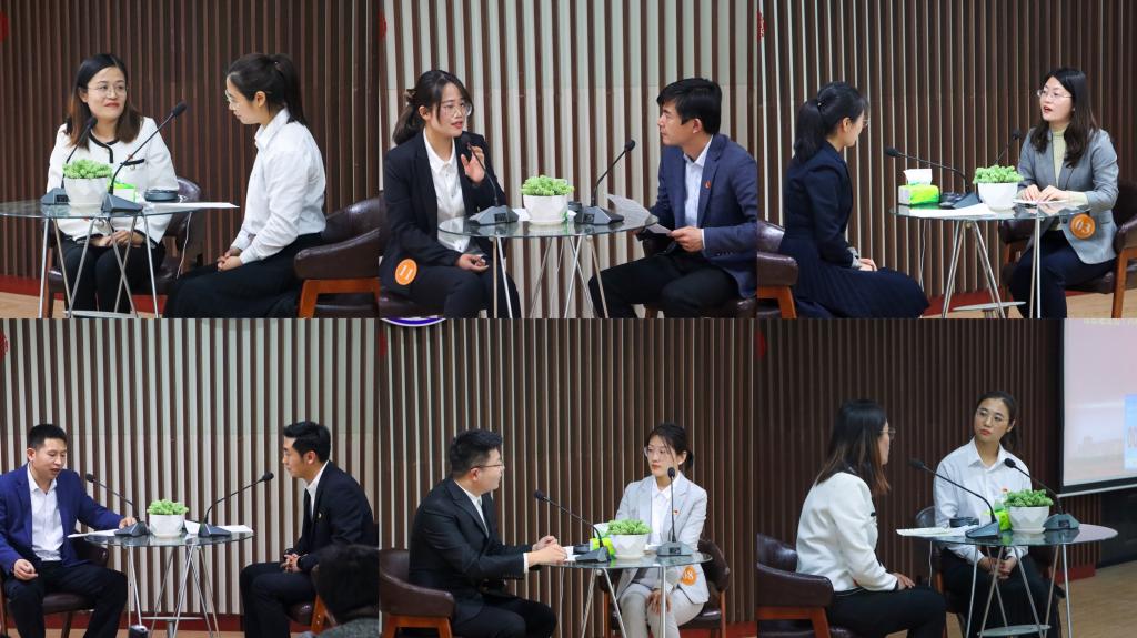 周红燕受邀点评,她从规则熟知、环节剖析、面试礼仪、态度语言等方面详细点评了亮点表现与不足,并对选手们在大赛经验、破题方法、解题思路等方面提出了中肯的意见和建议。