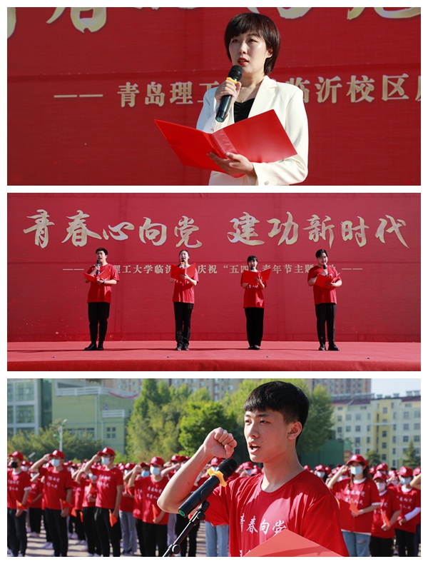 为庆祝中国共产主义青年团成立100周年,5月4日,青岛理工大学临沂校区在办公楼广场举行“青春心向党 建功新时代”庆祝“五四”青年节主题活动,600名青年师生代表参加活动。
