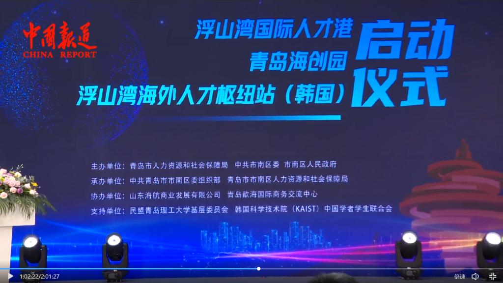 民盟青岛理工大学基层委员会联合韩国科学技术院(KAIST)留学生会、韩国仁荷大学土木工程学院等组织作为支持单位全程参与了浮山湾国际人才港的“开港”筹备工作。民盟青岛理工大学基层委员会主委、山东省泰山学者青年专家施雪卿教授,韩国工程院青年院士金东勋教授以及KAIST留学生代表分别在启动仪式上作现场连线致辞。本次活动,除了宣布浮山湾国际人才港正式“开港”,还举行了代表性人才项目入港签约仪式,浮山湾海外人才枢纽站(韩国站)成立仪式,以及为韩国工程院青年院士、山东省泰山学者青年专家颁发了“浮山湾国际人才港招才引智大使”证书。