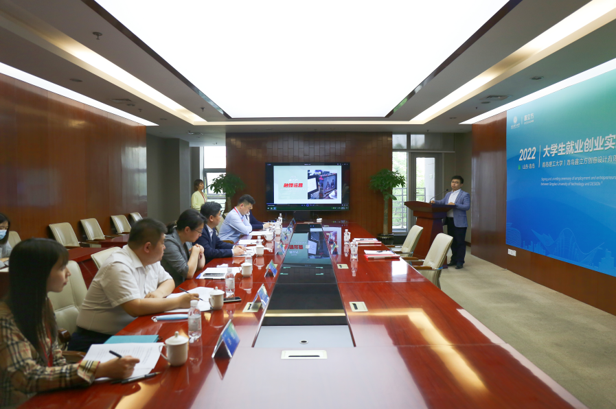 云乐鑫介绍了学校、学院的历史沿革和概况,重点介绍了学院的师资队伍、学科建设、人才培养、毕业生需求等情况。希望校企双方在课题研究、学生实训、毕业生就业渠道等方面与单位加强合作,实现校企双方共赢。随后,校企双方就实践教学、产学研融合、实习、就业等方面的合作进行深入的交流。鑫立方设计有限公司总经理薛浩表示,将为双方校企合作育人作出努力,利用自身资源优势,充分发挥大学生就业创业基地的桥梁、示范、平台作用,为广大青年营造更加宽松、健康、愉快的成长成才、就业创业环境,加快待毕业及毕业优秀学生的成长,为新区人才大发展大繁荣造就更多的中坚力量。