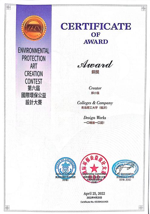近日,由美国科罗拉多州政府、美国艺术交流学会(科罗拉多州)主办的“第六届国际环保公益设计大赛”中国赛区组委会公布获奖名单,临沂校区土木与建筑工程系教师郑小强创作的作品荣获银奖1项、铜奖2项。