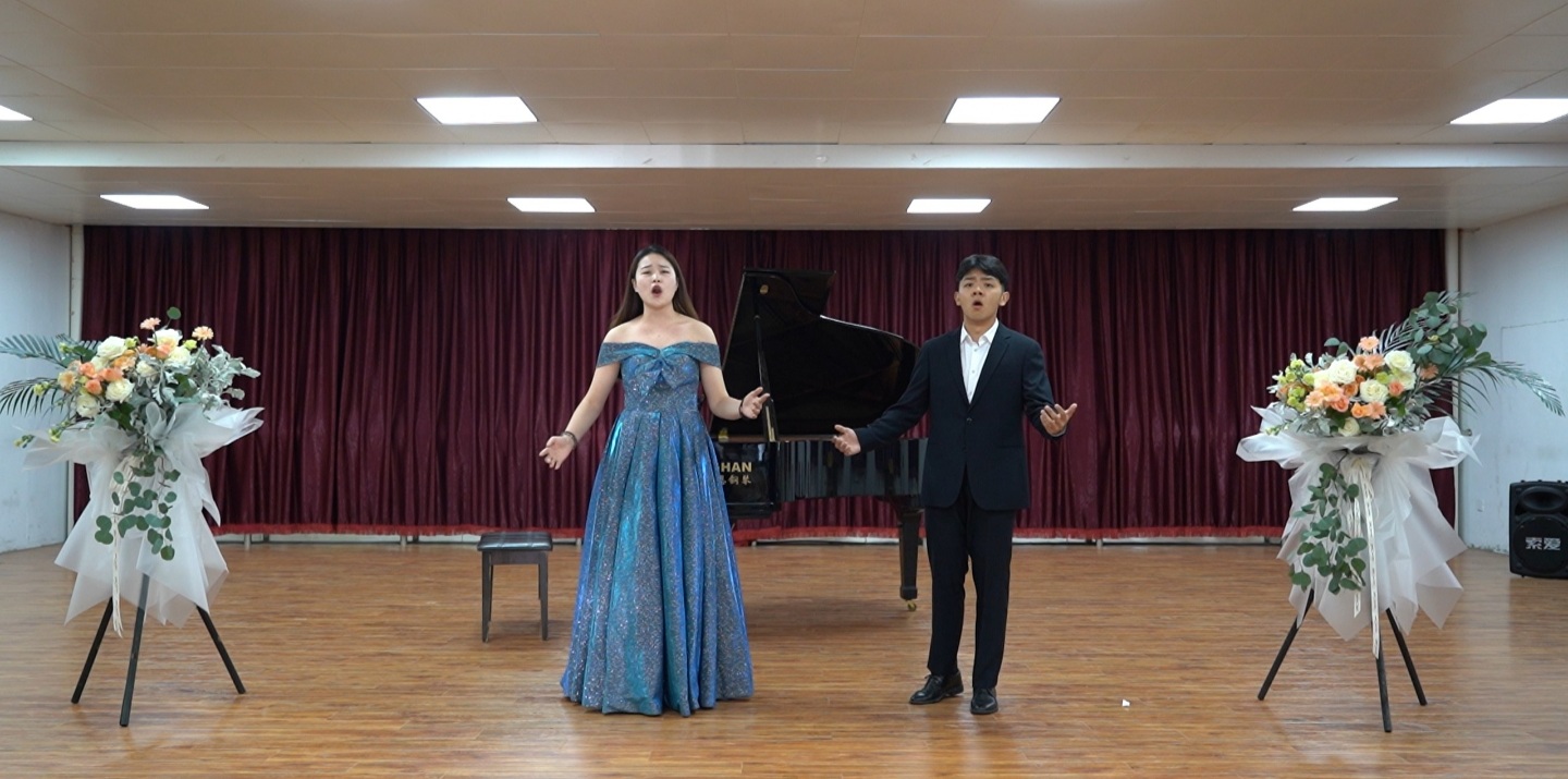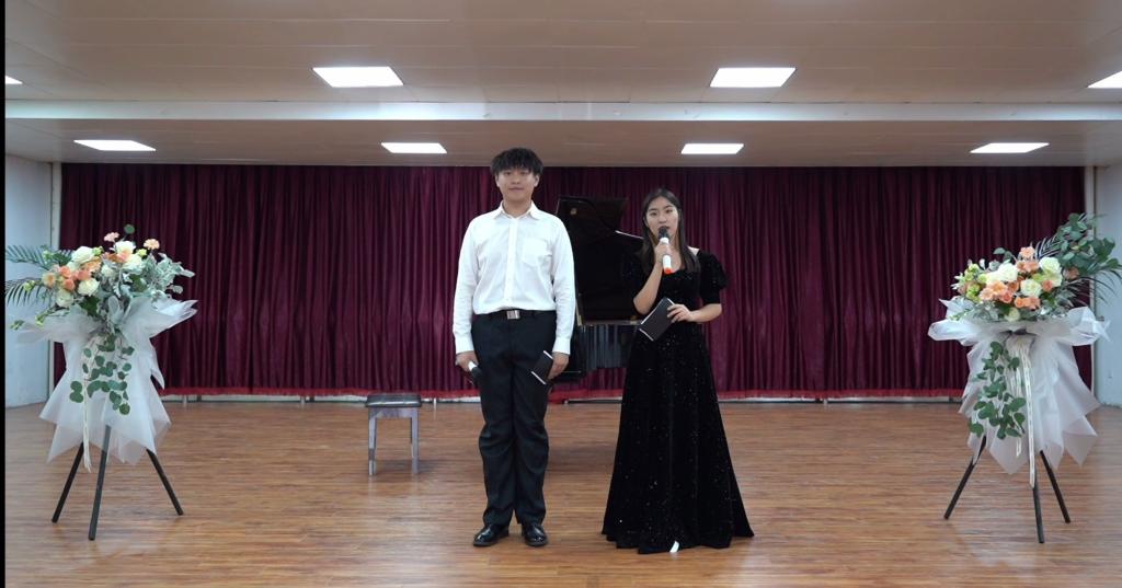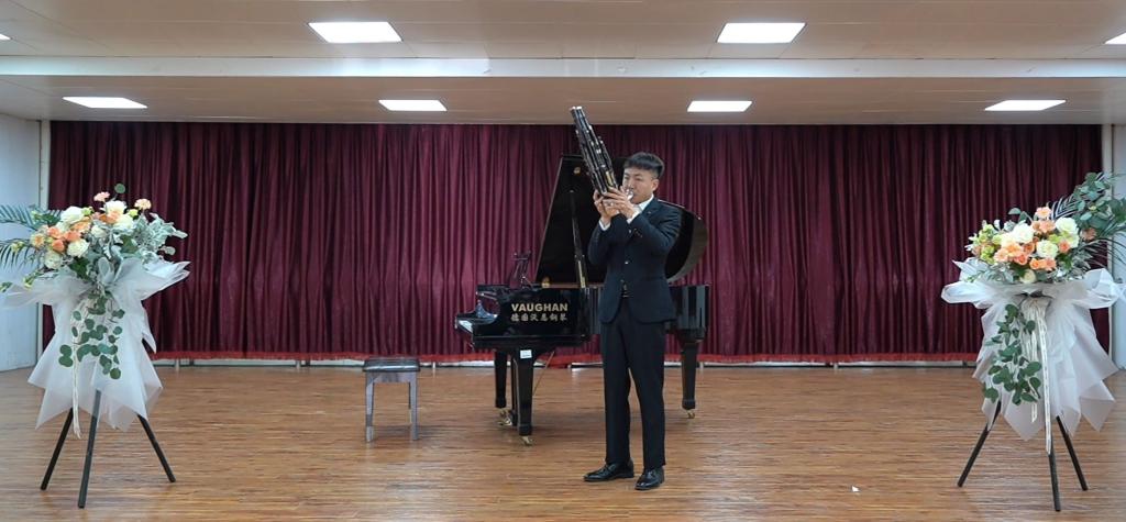 音乐会现场座无虚席,气氛热烈。一段段优美的旋律直击观众的心灵,人声演唱声义双关,委婉动听;乐器演奏美妙动人,形式多样。本次音乐会的节目有声乐二重唱《往日时光》、钢琴独奏贝多芬的《热情奏鸣曲》、萨克斯二重奏《亲爱的旅人啊》以及中国古老的簧管乐器笙独奏《南海渔歌》与《天山的节日》等。表演者们投入的演出,感染了现场所有观众。舒缓优美的旋律,让同学们陶醉其中,心灵也慢慢放松下来,在美妙的音乐冥想中尽情畅游,尽情享受音乐的美好。最后一首由2019级学生王洪泰演唱的原创歌曲《NOBLE QUEEN》更将音乐会现场的气氛推向高潮。