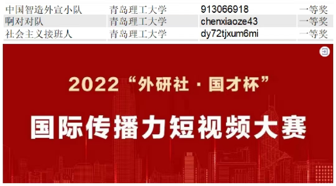 近日,“外研社·国才杯”国际传播力短视频大赛省赛结束。土木学子积极参与,获得省一等奖2项,省二等奖2项,省三等奖3项。