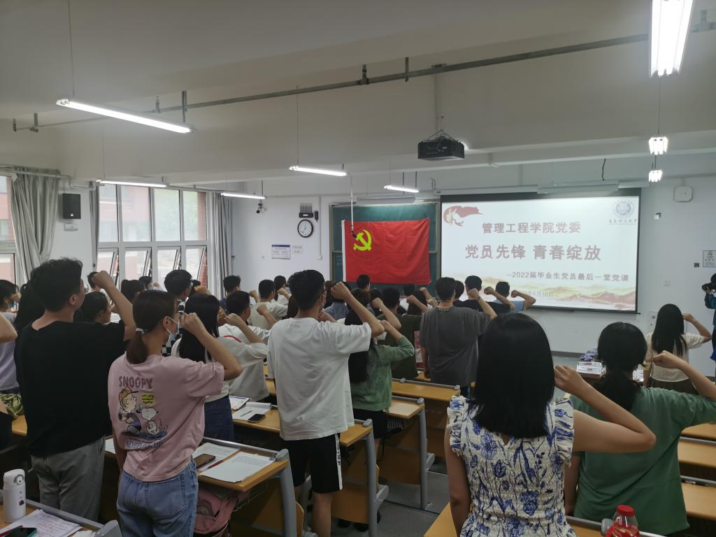 为切实加强毕业生思政教育,做好毕业生离校教育和思想政治工作,引导学生党员牢记身份、发挥先锋模范作用、立足岗位做贡献,近日,管理工程学院组织系列活动为毕业生上好“最后一堂思政课”。