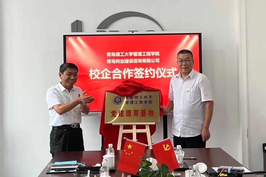 6月28日,管理工程学院与青岛利业建设咨询有限公司合作签约暨就业创业实践基地,揭牌仪式在利业建设咨询有限公司会议室举行。利业公司党支部书记、总经理李浩久,党支部委员、事业总监徐国栋,经营总监李翠,办公室主任王鑫鹏,管理工程学院党委书记李洪民,党委副书记、副院长王中帅,团委书记、学工办主任宋晓峰,辅导员李佳妮、崔新江及学生代表出席揭牌仪式。