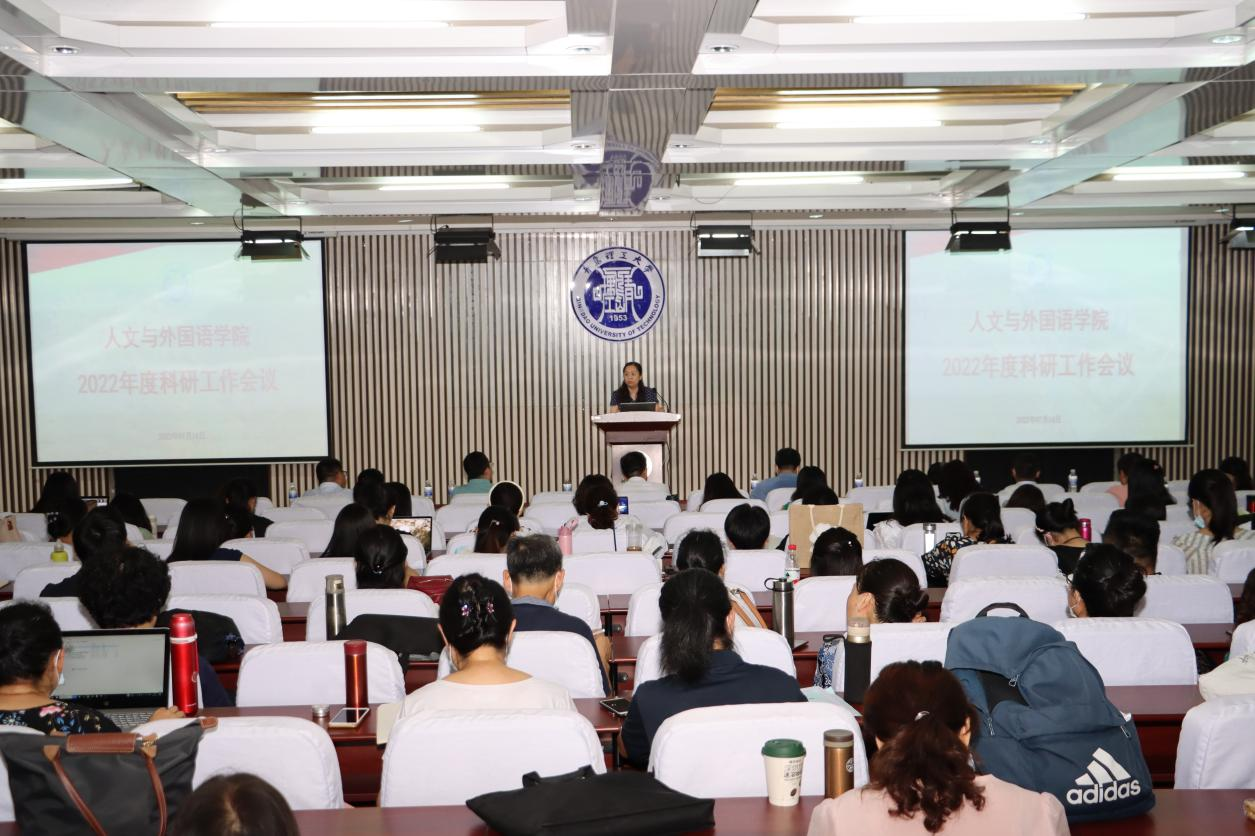 7月14日,人文与外国语学院在1号教学楼东报告厅召开学院2022年度科研工作会议。人文社科处处长郭印、副处长唐洪伟,人文与外国语学院党政班子及学院所有教学科研型、科研为主型教师参加会议。学院党委书记卢新明、院长巩湘红主持不同阶段会议。