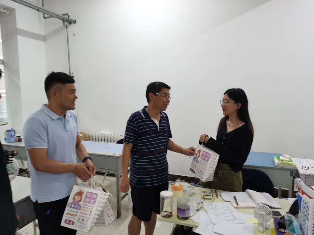 会后,学院领导老师前往考研自习室为同学们分发精心准备的“考研福袋”。福袋内装有学生用品和寓意“元气满满”的饮料和零食,表达学院对同学们的祝福。留校备考学生王云楷表示:炎炎夏日,我们在学校里备考,切实感受到学院领导和老师们的关心和重视,学院精心准备的“考研福袋”也让我们切实感受学院切实是想学生所想,备学生所需,我们会更加努力,考出一个好成绩。