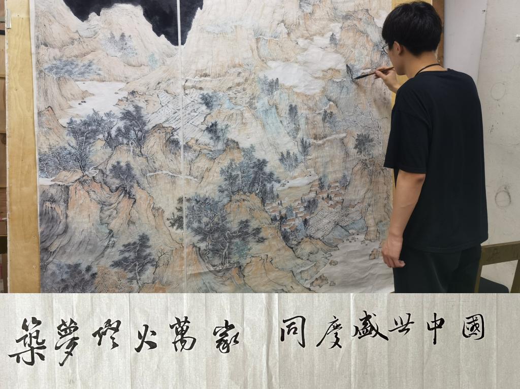 艺术与设计学院青年学子结合专业,用画笔描绘日新月异的祖国,把对祖国的祝福,对幸福生活的向往之情深深融入到创作之中,将对祖国的无限热爱化作一幅幅壮丽河山。